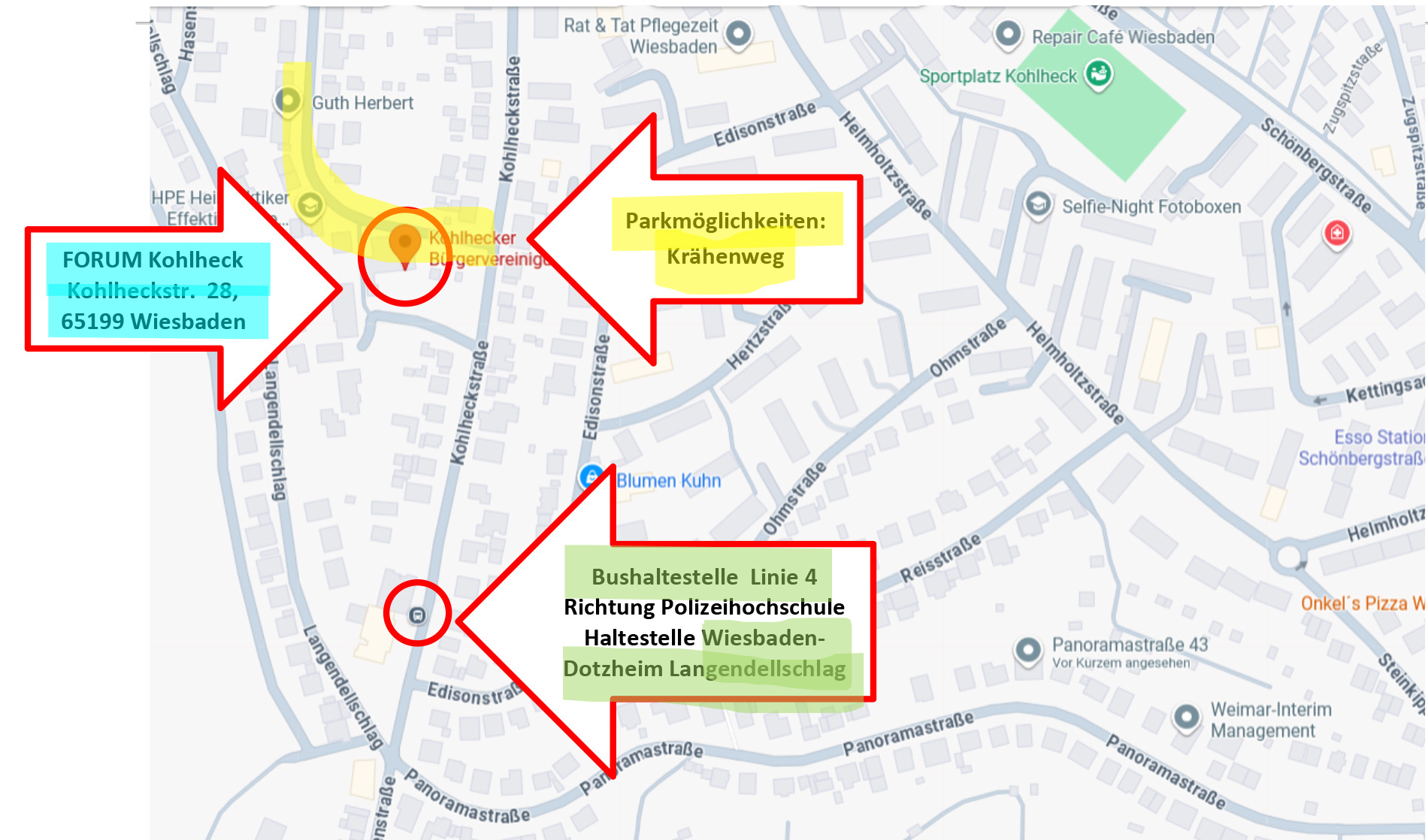 Umgebung: Vor allem im Krähenweg, aber auch in der Kohlheckstraße ist kostenloses Parken am Straßenrand möglich.